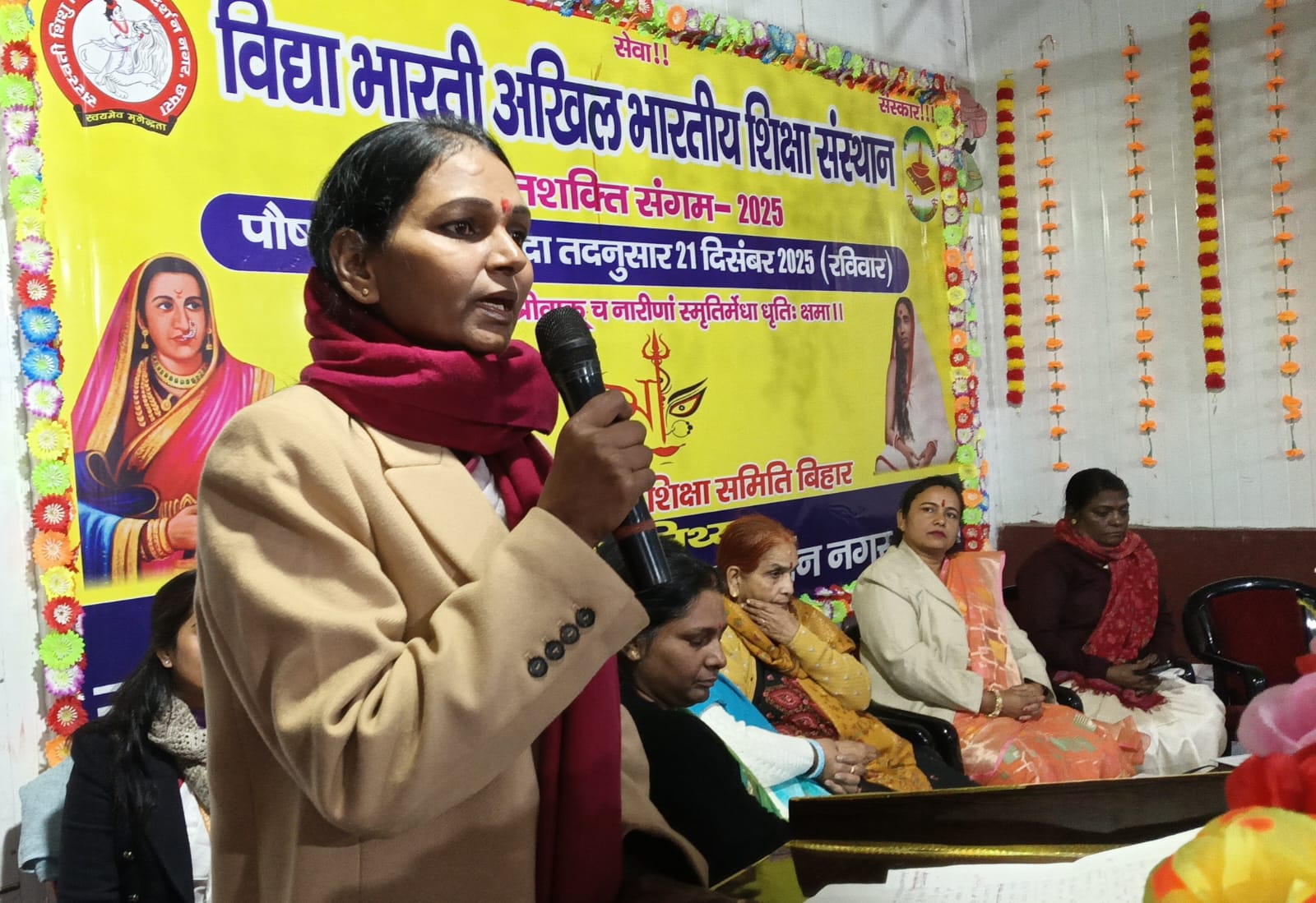 आशा रंजन (विभाग संयोजिका ) ने अपने उद्वोधन में कहा कि अपने स्व को जाने और अपने परिवार,कुटुंब को भारतीय संस्कार को भरते हुए अपने पर्यावरण को बचाने का कार्य करें।इस अवसर पर विशिष्ट अतिथि प्रो डॉ निधि ने नारी के सात गुणों – कीर्ति, श्री, वाक् ,स्मृति ,मेधा, धृति और क्षमा आदि पर प्रकाश डाला।उन्होंने कहा की इन शक्तियों को आत्मसात कर महिलाएं समाज में सकारात्मक परिवर्तन ला सकती हैं। मुख्य अतिथि सीमा सिंह ने महिलाओं को अपने आंतरिक शक्तियों को पहचानने और समाज निर्माण में सक्रिय रूप से भाग लेने के लिए प्रेरित किया। उन्होंने इस कार्यक्रम के माध्यम से संदेश दिया कि एक शिक्षित और सशक्त नारी ही उन्नत समाज की आधारशिला है। कार्यक्रम अध्यक्षता सुधा बाला ने कहा कि परिवार, समाज और राष्ट्र की उन्नति में माता का महत्वपूर्ण योगदान रहता है। परिवार प्रथम पाठशाला है और मां प्रथम गुरु है। हमें अपने आंतरिक शक्तियों की पहचान कर उन्हें जागृत करने की आवश्यकता है। विद्यालय के मीडिया प्रभारी अनिल कुमार आजाद ने बताया कि कार्यक्रम का आभार प्रकट करते हुए आचार्या संगीता कुमारी ने सप्तशती संगम मातृशक्ति के उस ऊर्जा का प्रतीक बताई जो समाज ,संस्कृति, शिक्षा और राष्ट्र को सुदृढ़ आधार प्रदान करती है। नारी केवल परिवार की धुरी नहीं बल्कि समाज की चेतना और राष्ट्र की शक्ति है। आचार्या दर्शना सिंह एवं रंजीत रंजन ने एक प्रश्नोत्तरी कार्यक्रम आयोजित की जिसका उद्देश्य धर्म एवं संस्कृति के प्रति जागरूकता बढ़ाना था। प्रश्नोत्तरी में मातृशक्ति से धर्म और संस्कृति से जुड़े कई सवाल पूछे गए । सही उत्तर देने वाले प्रत्येक प्रतिभागियों को सम्मानित किया गया। कार्यक्रम का संचालन आचार्या स्वाति सिंह ने किया । इस कार्यक्रम में विभाग निरीक्षक अनिल कुमार राम, विद्यालय प्रबंध कार्यकारिणी समिति के राजेश्वर प्रसाद यादव (उपाध्यक्ष),सुरेश प्रसाद सिंह ( सचिव ), पूर्णेंदु रंजन, डॉक्टर ओंकार नाथ, मनोज कुमार श्रीवास्तव,सुरभि दत्त , राहुल कुमार मेहता (सदस्य) एवं कुमार विजय रंजन (प्रधानाचार्य, महावीरी सरस्वती विद्या मंदिर, विजय हाता, सिवान),कमलेश कुमार मिश्र (प्रधानाचार्य, सरस्वती शिशु मंदिर,सिवान) सहित सभी आचार्य बंधु भगिनी उपस्थित थे।