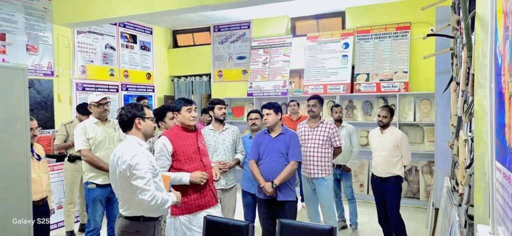 लोकतंत्र न्यूज़ नेटवर्क,सिवान-: दयानंद आयुर्वेदिक मेडिकल कॉलेज एवं अस्पताल सिवान के शासी निकाय के अध्यक्ष एवं बिहार सरकार में पूर्व मंत्री डॉ महाचंद्र प्रसाद सिंह के द्वारा गुरुवार को महाविद्यालय के सभी 14 विभागों एवं हर्बल गार्डन का निरीक्षण किया गया साथ ही नये बन रहे पीजी रिसर्च सेंटर के भवन के कार्यों की समीक्षा कि गई. इस अवसर पर उनके साथ शासी निकाय के सचिव डॉ रामानंद पांडेय महाविद्यालय के प्राचार्य प्रोफेसर डॉ सुधांशु शेखर त्रिपाठी एवं सभी विभागाध्यक्ष उपस्थित थे उन्होंने निरीक्षण के क्रम में सभी शिक्षकों एवं कर्मचारीयों को अपने विभाग से संबंधित कार्यों को सही तरीके से संपादित करने को कहा। महाविद्यालय के प्राचार्य प्रोफेसर डॉ सुधांशु शेखर त्रिपाठी ने अध्यक्ष डॉ महाचंद्र प्रसाद सिंह को महाविद्यालय में हो रहे शैक्षणिक गतिविधियों एवं महाविद्यालय द्वारा चलाए जा रहे हैं बाहरी कैंपों की विस्तृत जानकारी दी। इस दौरान प्रोफेसर डॉ राजा प्रसाद, प्रोफेसर डॉ उपेंद्र पर्वत, प्रोफेसर डॉ पि एन ओझा, डॉ एस के तिवारी डॉ विजय गणेश यादव, डॉ पुष्कर राय डॉ राजीव रंजन, डॉ दुर्गेश कुमार राघवेंद्र उपाध्याय प्रकाश पांडे दीपक कुमार सुधीर द्विवेदी सुनील सिंह सहित सभी शिक्षक, शिक्षकेत्तर कर्मचारी एवं छात्र-छात्राएं अपने स्थान पर उपस्थित रहे।