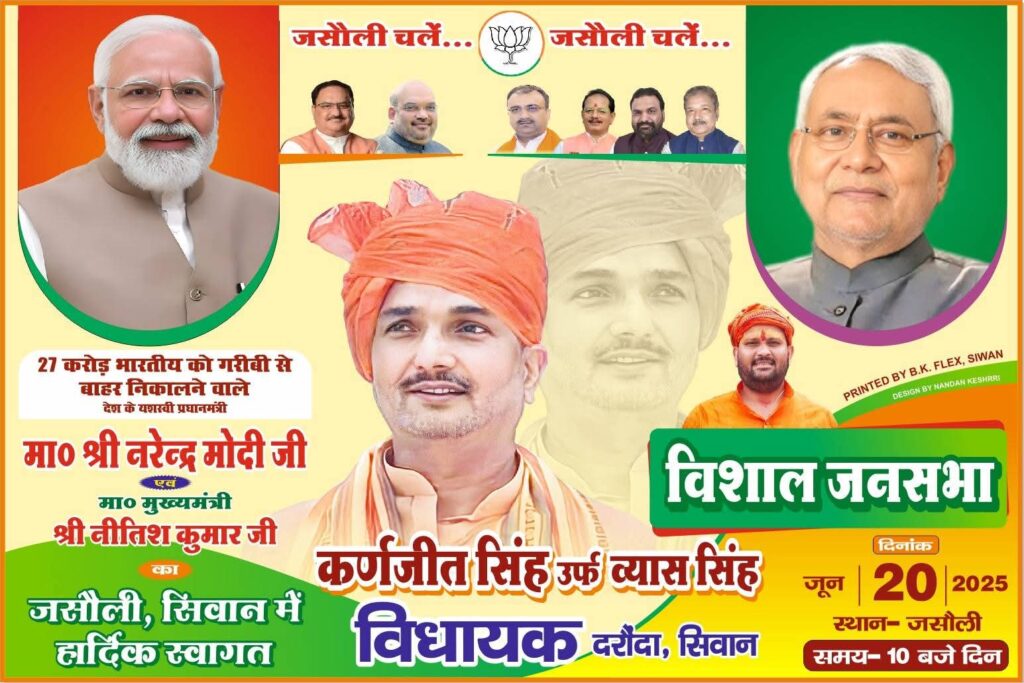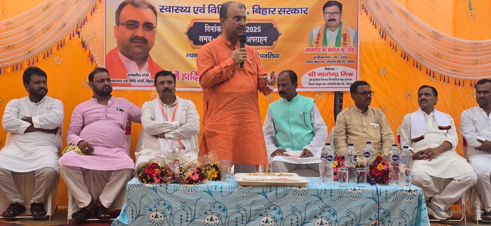 उन्होंने कहा कि पीएम मोदी का बिहार के प्रति अगाध प्रेम इससे भी दृष्टिगोचर होता है कि वे अपने प्रधानमंत्री काल में 51 बार बिहार पहुंच चुके हैं। कार्यक्रम मे मुख्य रूप से पूर्व विधानपार्षद सह कोऑपरेटिव बैंक के अध्यक्ष मनोज कुमार सिंह धार्मिक न्यास परिषद के सदस्य अभिमन्यु कुमार सिंह जी नागेंद्र मिश्रा शिव शंकर प्रसाद एवं हजारों ग्रामीण मौजूद रहे।