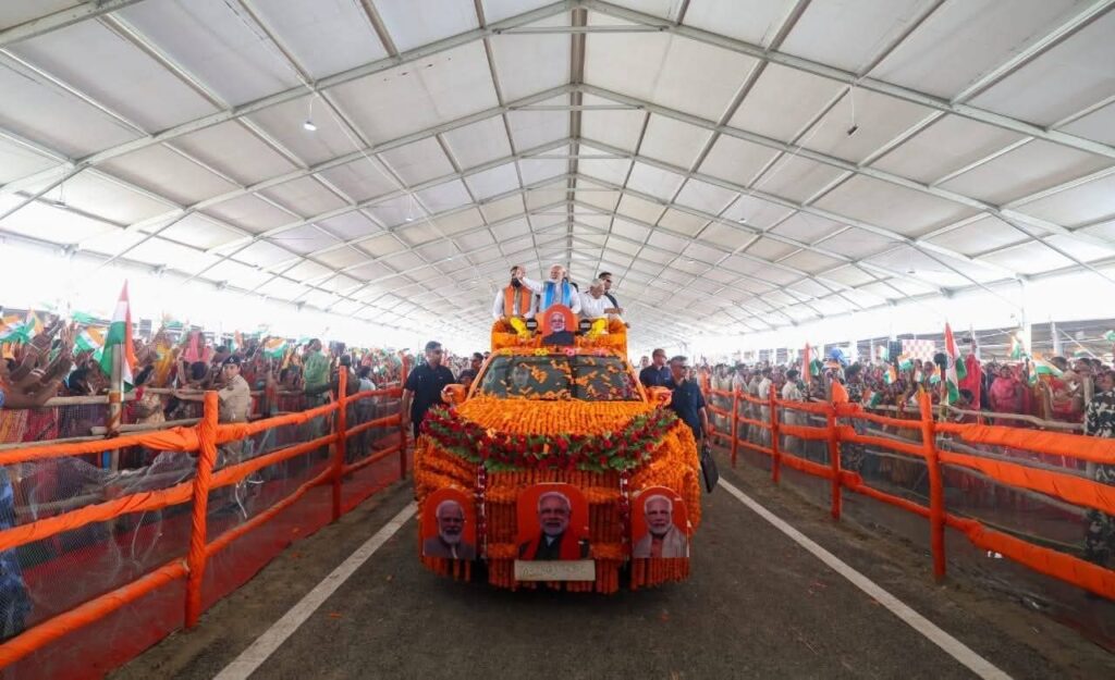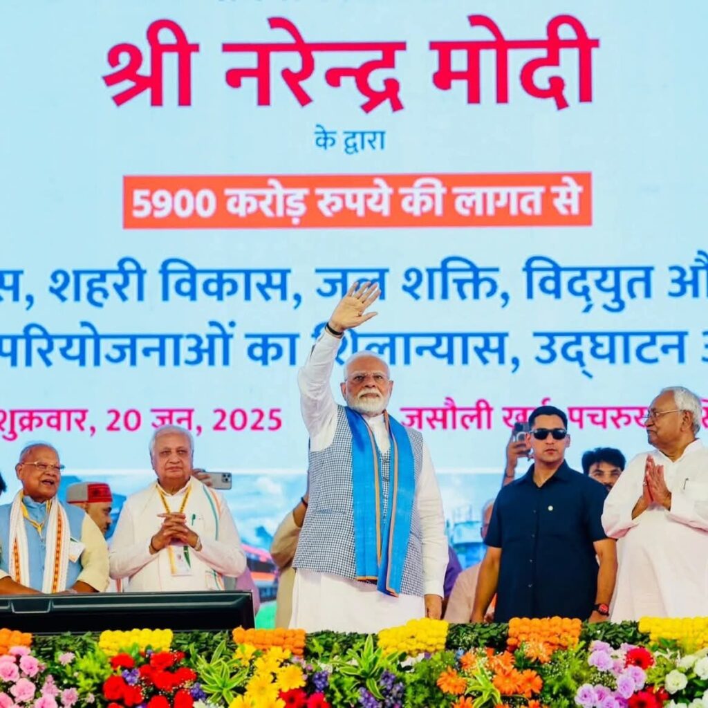 लोकतंत्र न्यूज़ नेटवर्क,सिवान ; प्रधानमंत्री नरेंद्र मोदी शुक्रवार को सिवान की ऐतिहासिक धरती जसौली में पहुँचे जहाँ उन्होंने विशाल जनसभा को संबोधित किया।आधिकारिक रूप से आयोजित सरकारी कार्यक्रम में प्रधानमंत्री ने लगभग 5900 करोड़ रुपये की परियोजनाओं का शिलान्यास एवं लोकार्पण किया।प्रधानमंत्री मोदी को देखने व सुनने के लिए कार्यक्रम स्थल पर लाखों लोगों की भीड़ उमड़ पड़ी थी। बिहार विधानसभा चुनाव 2025 से पहले प्रधानमंत्री ने इस रैली से कई राजनीतिक संकेत दे दिए हैं।जंगलराज, आंबेडकर का अपमान जैसे मुद्दों को उठाकर उन्होंने आरजेडी और कांग्रेस को आड़े हाथों लिया। वहीं, मुख्यमंत्री नीतीश कुमार के कामों की तारीफ कर एनडीए की एकजुटता भी दिखाई।उन्होंने कहा कि नीतिश जी के नेतृत्व में बिहार के लिए बहुत काम हुआ,अभी और बहुत कुछ करना है।