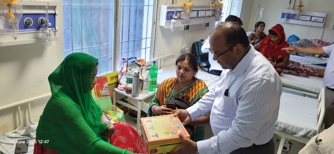 3. महिला वार्ड में प्रसव उपरांत भर्ती प्रसुति महिलाओं (कुल 17) को जच्चा बच्चा कीट वितरीत किया गया। तदोपरांत प्रसुति महिलाओं को माँ का दुध ही शिशुओं को पिलाने का परामर्श दिया गया। जिला पदाधिकारी द्वारा बताया गया कि माँ का दुध ही शिशुओं के लिए सर्वोतम आहार है।