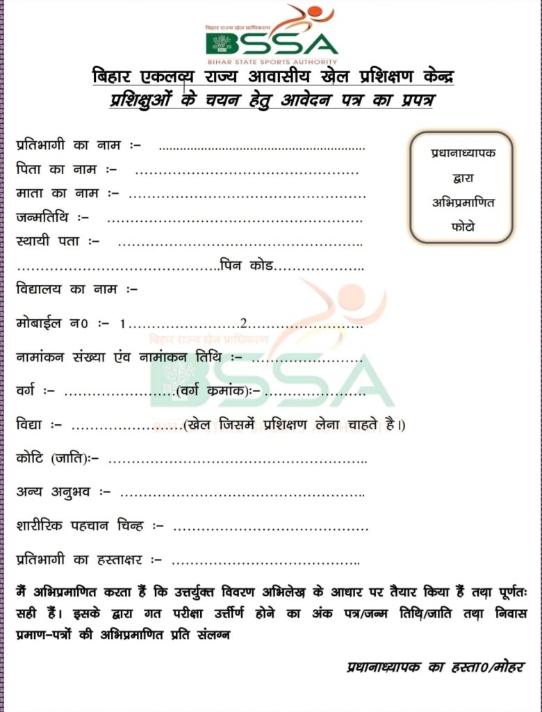 बिहार राज्य खेल प्राधिकरण, पटना से जिला खेल पदाधिकारी, सिवान को प्राप्त निर्देशालोक में एकलव्य राज्य आवासीय प्रशिक्षण केंद्र पर खिलाड़ियों का चयन ट्रायल के जरिए किया जाना है।