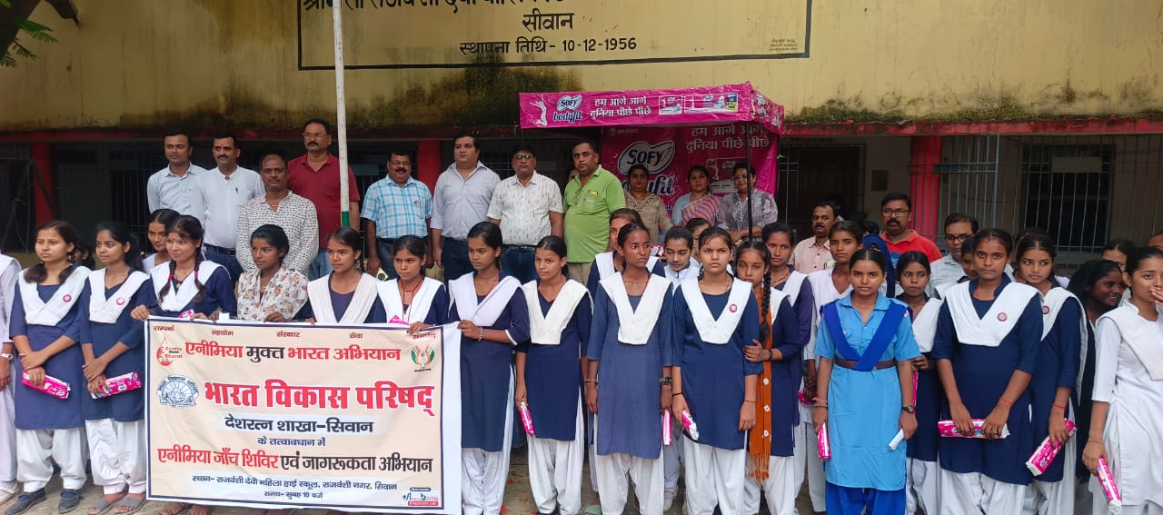 सिवान:-भारत विकास परिषद् देश रत्न शाखा द्वारा वुधवार को जिला मुख्यालय स्थित राजवंशी देवी बालिका उच्च विद्यालय में एनीमिया जांच शिविर आयोजित कर लगभग 255 छात्राओं का एनीमिया रोग की जांच किया गया। साथ ही छात्राओं को आयरन की गोली सहित फल भी वितरण किया गया। वहीं शाखा के महिला सदस्यों द्वारा छात्राओं को सैनेट्री पैड भी वितरण कर जागरूक किया गया। शिविर में उत्तर विहार प्रांत के प्रांतीय संपर्क संयोजक भारत भूषण पांडेय व सचिव अतुल कुमार श्रीवास्तव द्वारा छात्राओं को एनीमिया रोग से संबंधित विस्तार पूर्वक चर्चा करते हुए बताया गया कि गुड़ व चना खाने व लोहे की कड़ाही में बना सब्जी भोजन के साथ लेने पर एनीमिया रोग से मुक्ति मिल सकती है। साथ ही यह भी बताया गया भारत विकास परिषद का उद्देश्य है कि भारत से एनीमिया रोग मुक्त हो जाएं। शिविर में भारत विकास परिषद के संरक्षक व एकूरेट डायग्नोस्टिक लैब के निदेशक डाक्टर सौरभ सिंह व शाखा के महिला बाल विकास के संयोजक डाक्टर ऋचा सिंह, डाक्टर मिताली राज द्वारा छात्राओं की एनीमिया रोग की जांच करते हुए आवश्यक सलाह दिया गया। इस अवसर पर शाखा के महिला सदस्य अर्चना गुप्ता, गीन्नी सिंह,कोषाध्यक्ष राजीव रंजन उर्फ श्रवण जी, राजवंशी देवी बालिका उच्च विद्यालय के प्रभारी प्राचार्य रामाकांत पांडेय, संस्कार संयोजक डाक्टर सुधीर कुमार सिंह, पर्यावरण संयोजक रूपेश कुमार सिंह, मनोज कुमार सिंह, इंदल कुमार सिंह,आनंद मित्तल, वरीय पत्रकार अरविंद सौरभ, संतोष कुमार गुप्ता, आनंद भूषण, विनोद कुमार, शिवम कुमार धनंजय दूबे, चंदन सहित विद्यालय के सभी शिक्षक व शिक्षिकाएं उपस्थित थीं।