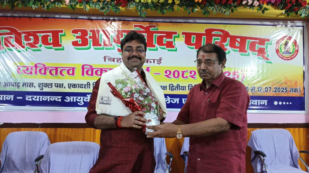 सिवान-; विश्व आयुर्वेद परिषद,बिहार इकाई के द्वारा दयानंद आयुर्वेदिक मेडिकल कॉलेज परिसर में आयोजित 7 दिवसीय व्यक्तित्व विकास वर्ग के छठे दिन शुक्रवार को धन्वंतरि सभागार में इसकी विधिवत शुरुआत हुई।प्रथम सत्र में दिल्ली उच्च न्यायालय के अधिवक्ता शितांशु शेखर त्रिपाठी ने चिकित्सा न्याय शास्त्र,मेडिको लीगल केसेस,साईबर क्राइम एवं उससे बचाव से संबंधित कानूनी प्रावधानों पर बिंदुवार प्रकाश डाला।इसके उपरांत दयानन्द आयुर्वेदिक मेडिकल कॉलेज के सलाहकार डॉ प्रजापति त्रिपाठी ने भगवान धनवंतरी का तैल चित्र व पुष्पगुच्छ तथा उपहार देकर उनका सम्मान किया।