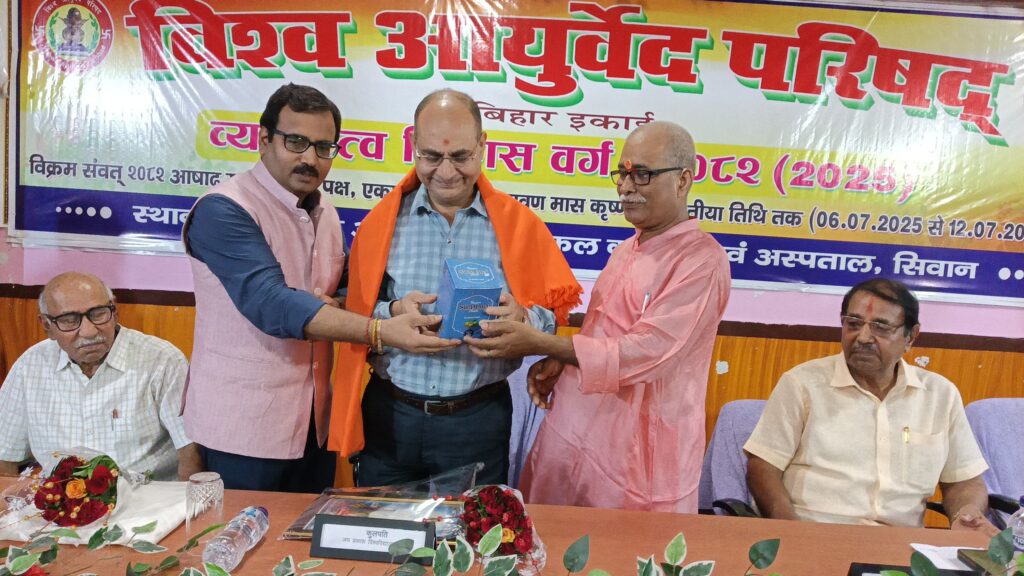 देकर सम्मान किया गया।वहीं कार्यक्रम के सफल आयोजन में सहयोग करने वाले कर्मियों छात्रों का भी सम्मान किया गया।इस अवसर पर डॉ राजा प्रसाद,डॉ उपेंद्र पर्वत,वैद्य अंकेश मिश्रा,डॉ पुष्कर राय, डॉ राजीव रंजन,डॉ सुजीत,डॉ जितेंद्र कुमार यादव एवं डॉ प्रकाश सिंह सहित सभी प्रतिभागी छात्र उपस्थित रहे।