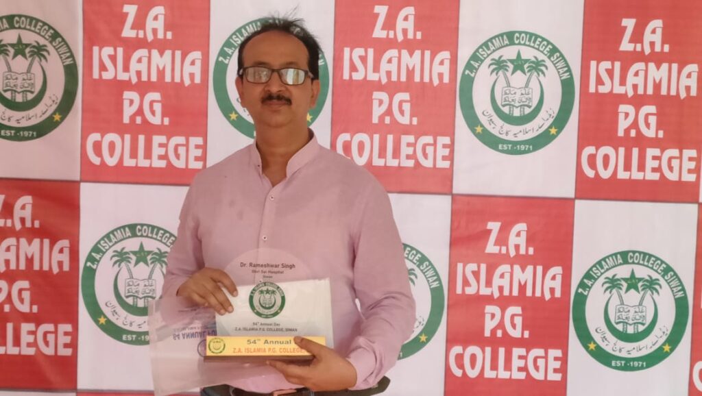 लोकतंत्र न्यूज़ नेटवर्क,सिवान ;- सम्मानितआज सिवान के प्रतिष्ठित जेड इस्लामिया पी.जी. कॉलेज में आयोजित एक गरिमामयी समारोह में डॉ. रमेश्वर कुमार, वरिष्ठ ऑर्थोपेडिक एवं जॉइंट रिप्लेसमेंट सर्जन, को बिहार के राज्यपाल श्री आरिफ मोहम्मद खान द्वारा सम्मानित किया गया।