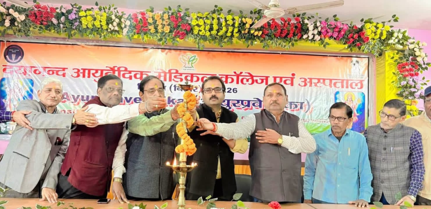 लोकतंत्र न्यूज़,सिवान – ; भारतीय चिकित्सा पद्धति राष्ट्रीय आयोग,नई दिल्ली एवं आयुष मंत्रालय भारत सरकार द्वारा निर्देशित ट्रांसिशनल करिकुलम के अन्तर्गत दयान्द आयुर्वेदिक मेडिकल कॉलेज परिसर में सत्र 2025-26 के नवागातुक छात्र-छात्राओं का गुरुवार को स्वागत एवं अभिनन्दन किया गया।इस अवसर पर प्राचार्य डॉ सुधांशु शेखर त्रिपाठी, पूर्व प्राचार्य डॉ प्रजापति त्रिपाठी,सचिव डॉ रामानंद पाण्डेय,उप प्राचार्य डॉ राजा प्रसाद,प्रोफ़ेसर अनुपम आदित्य,प्रो. उपेंद्र पर्वत सहित सत्र 2025-26 के नवागातुक bछात्र-छात्रायें मौजूद रहे।