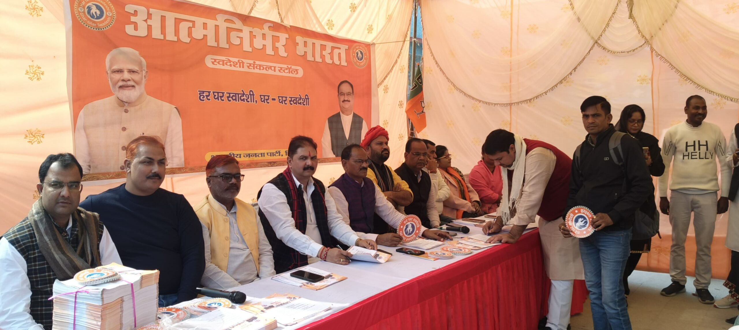 भाजपा ने रेलवे स्टेशन पर आत्मनिर्भर भारत,स्वदेशी संकल्प स्टाल लगाकर लोगों को किया जागरूक