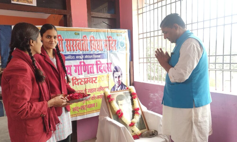 महावीरी सरस्वती विद्या मंदिर बरहन गोपाल सिवान में महान गणितज्ञ श्रीनिवास रामानुजन के जयंती को गणित दिवस के रूप में मनाया गया