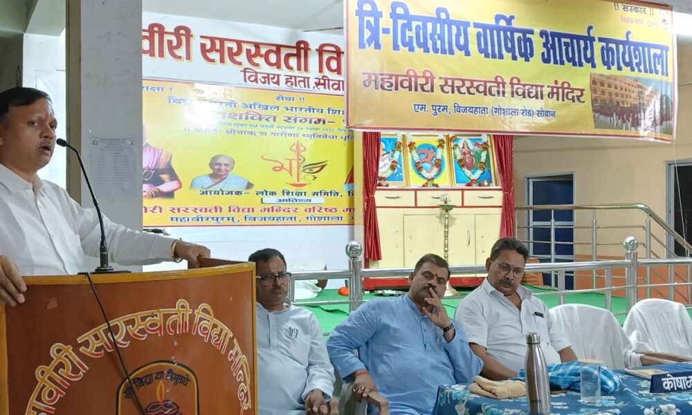 लोकतंत्र न्यूज़,सारण ;- सरस्वती शिशु विद्या मंदिर, दर्शन नगर, छपरा के सभागार में मंगलवार को एक गरिमामय एवं उद्देश्यपूर्ण बैठक का आयोजन किया गया।इस अवसर पर दिनांक 21 दिसंबर 2025 को आयोजित होने वाले “सप्त शक्ति संगम” कार्यक्रम की सफलता सुनिश्चित करने हेतु सभी माननीय शिक्षक एवं शिक्षिकाओं को आवश्यक दिशा-निर्देश प्रदान किए गए।विद्यालय के अध्यक्ष होने के नाते मैंने मातृशक्ति द्वारा आयोजित तथा राष्ट्रीय स्वयंसेवक संघ के मार्गदर्शन में होने वाले इस कार्यक्रम को अधिक प्रभावी बनाने के लिए अपने विचार और उपयोगी सुझाव दिया।इस बैठक में विद्यालय के माननीय उपाध्यक्ष महोदय, सचिव महोदय,प्राचार्य महोदय के साथ-साथ सिवान स्थित महावीरी सरस्वती मंदिर विद्यालय के दिशा-निर्देशन में संचालित चार प्रमुख विद्यालयों के माननीय प्राचार्य महोदय भी उपस्थित रहे।इसके अतिरिक्त सिवान स्थित विद्यालय प्रबंधन समिति के अध्यक्ष, उपाध्यक्ष, सचिव तथा विद्वान विभाग निरीक्षक महोदय की उपस्थिति ने कार्यक्रम की गरिमा को और बढ़ाया।इस अवसर पर सिवान से पधारे सभी गणमान्य अतिथियों को अंगवस्त्र, कैलेंडर एवं डायरी भेंट कर सम्मानित करने का सुअवसर भी प्राप्त हुआ, जो हमारे संस्कार और अतिथि-सम्मान की परंपरा का प्रतीक है।यह बैठक केवल एक औपचारिक आयोजन नहीं थी, बल्कि शिक्षा, संगठन और राष्ट्रहित के प्रति हमारी सामूहिक प्रतिबद्धता का सशक्त उदाहरण थी। -सप्तशक्ति संगम : मातृशक्ति का राष्ट्रनिर्माण में योगदान-सप्तशक्ति संगम मातृशक्ति की उस ऊर्जा का प्रतीक है जो समाज, संस्कृति, शिक्षा और राष्ट्र को सुदृढ़ आधार प्रदान करती है। नारी केवल परिवार की धुरी नहीं, बल्कि समाज की चेतना और राष्ट्र की शक्ति है। शिक्षा, संस्कार, सेवा और संगठन, इन सभी क्षेत्रों में महिलाओं का योगदान सदैव मार्गदर्शक रहा है।आज जब मातृशक्ति संगठित होकर शब्द,विचार और कर्म के माध्यम से राष्ट्रहित में आगे बढ़ती है,तब ऐसे कार्यक्रम समाज को सही दिशा देने का कार्य करते हैं। सप्तशक्ति संगम जैसे आयोजन हमें यह स्मरण कराते हैं कि नारी की सृजनात्मक शक्ति ही देश को आत्मनिर्भर,संस्कारवान और सशक्त बना सकती है।हम सबका दायित्व है कि इस पवित्र प्रयास को पूर्ण निष्ठा और समर्पण के साथ सफल बनाएं तथा मातृशक्ति के इस प्रेरणादायी योगदान को जन-जन तक पहुँचाएं।