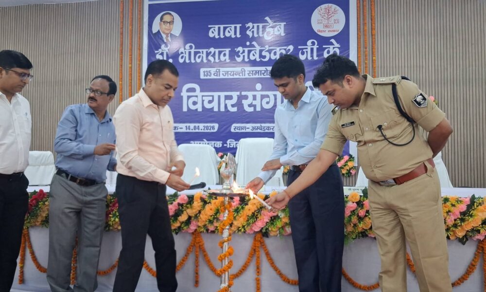लोकतंत्र न्यूज,सिवान ;- भारत रत्न डॉ भीमराव रामजी आबेडकर जी की 135 वीं जयंती के अवसर पर अम्बेडकर भवन सिवान के संवाद कक्ष में एक विचार गोष्ठी का आयोजन किया गया।विचार गोष्ठी के अवसर पर जिलाधिकारी,पुलिस अधीक्षक सहित अन्य गणमान्य ने अंबेडकर भवन में अवस्थित प्रतिमा पर माल्यार्पण कर अपने विचारों को रखा।